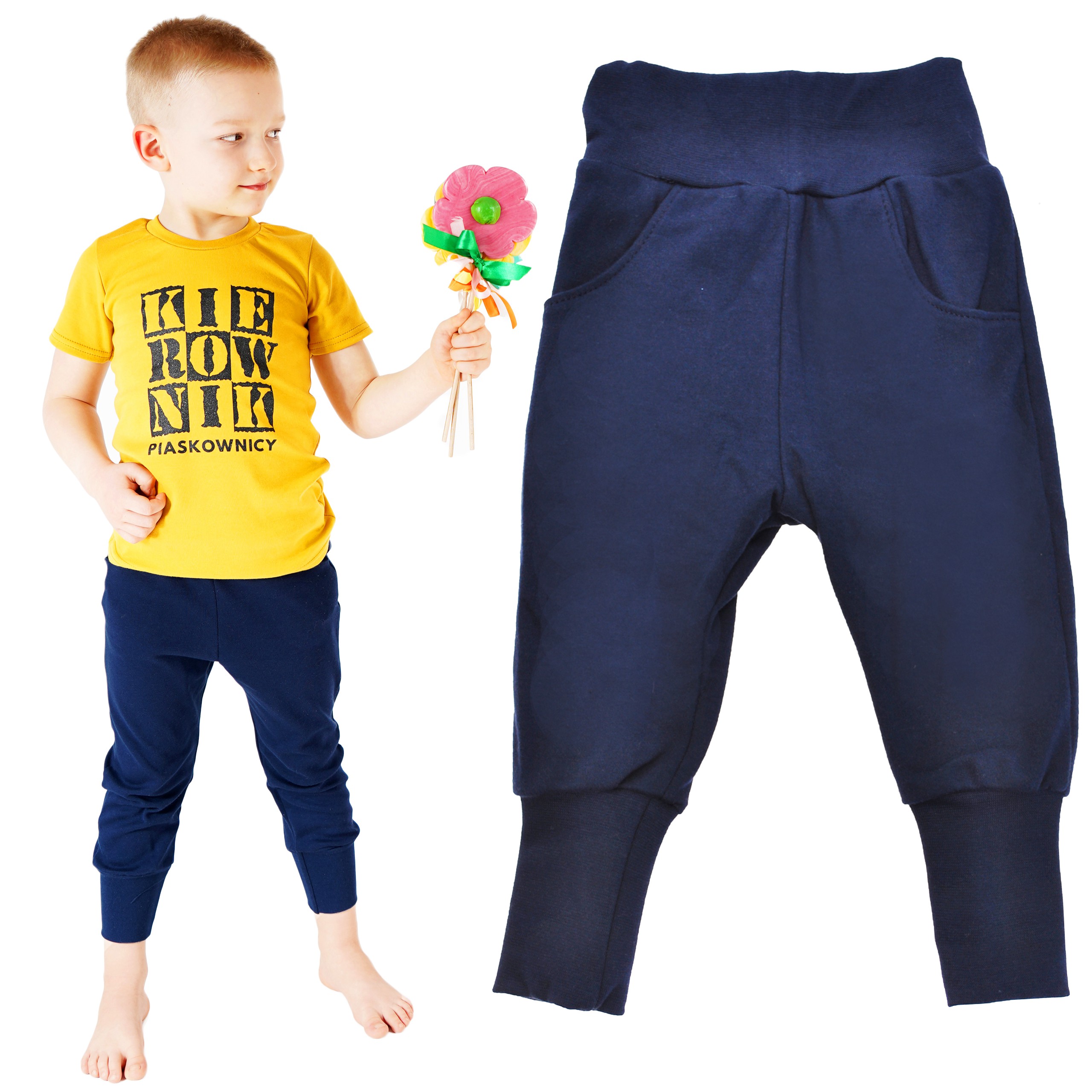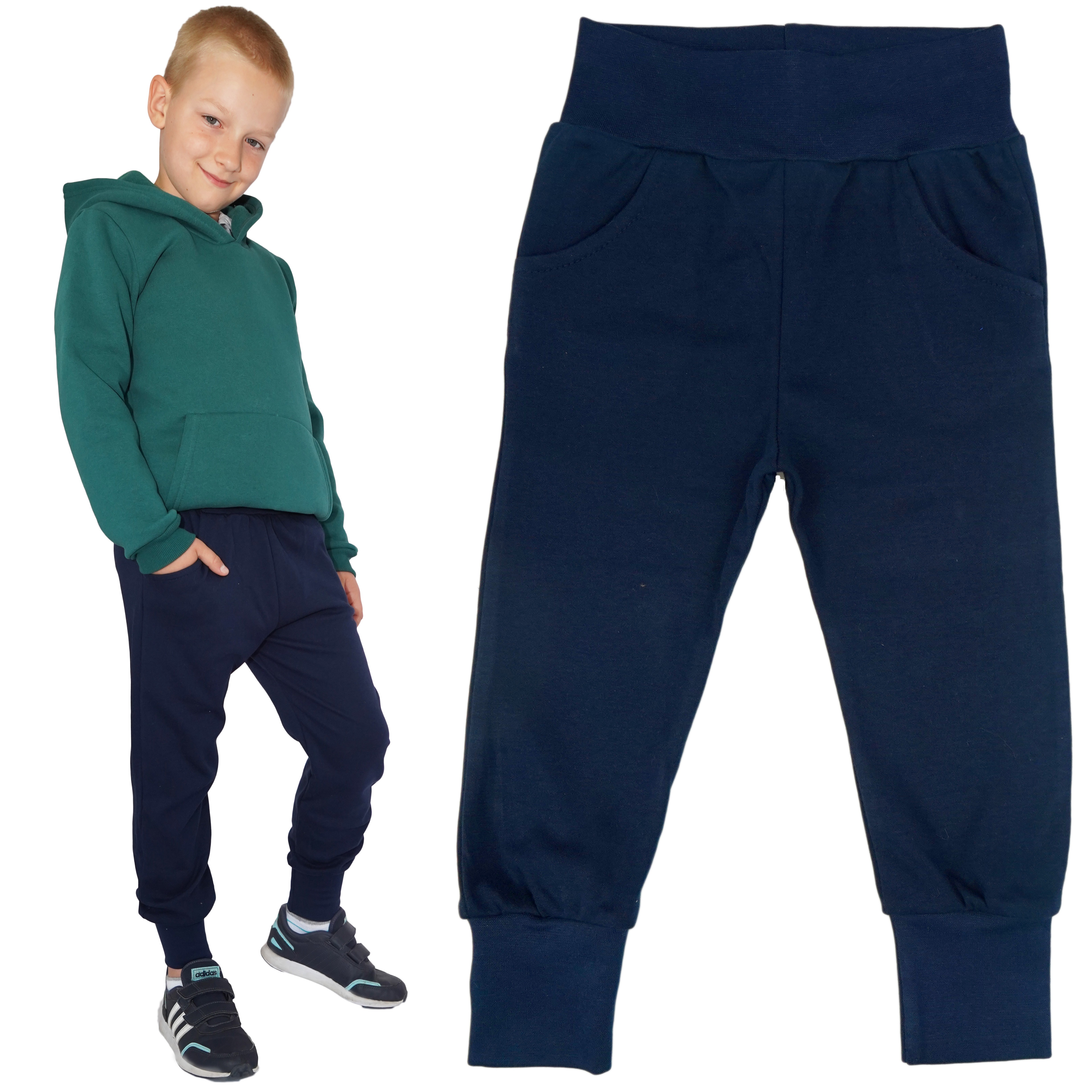 Nasza kolekcja bawełnianych spodni z wyciąganą gumką w pasie, kieszeniami i wywijanymi ściągaczami przy nogawkach to doskonałe rozwiązanie dla rodziców poszukujących wygodnych i praktycznych ubrań dla swoich dzieci.