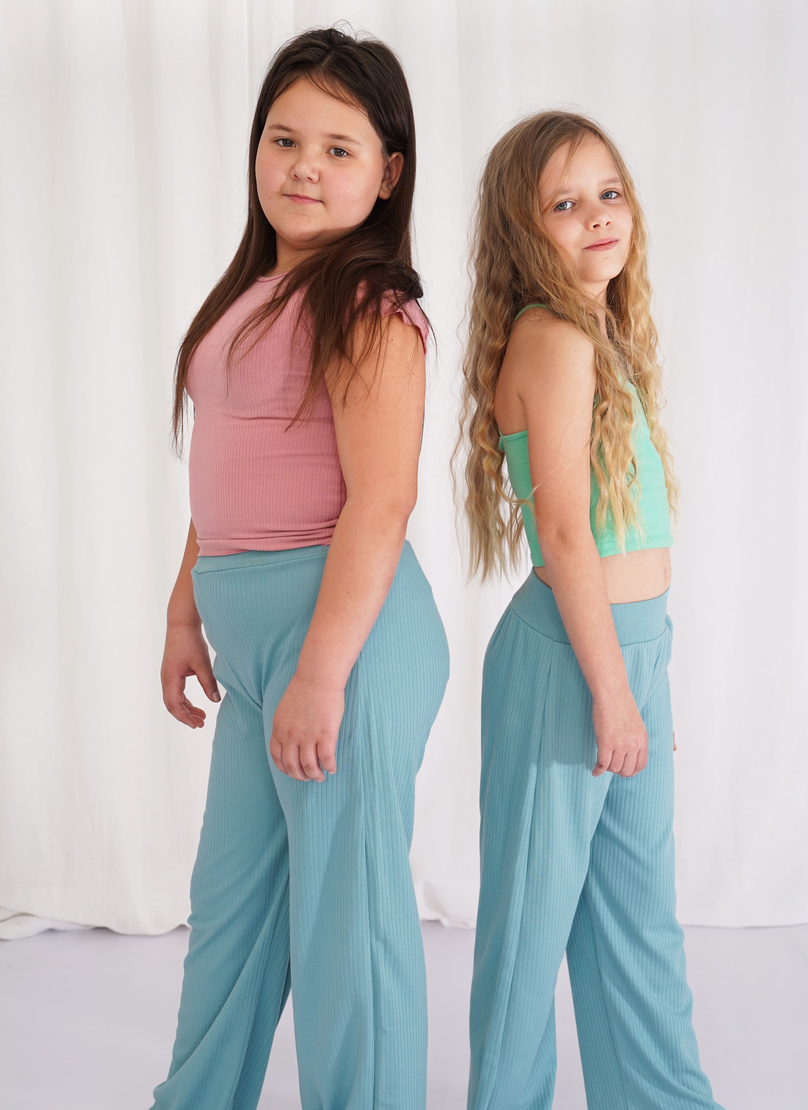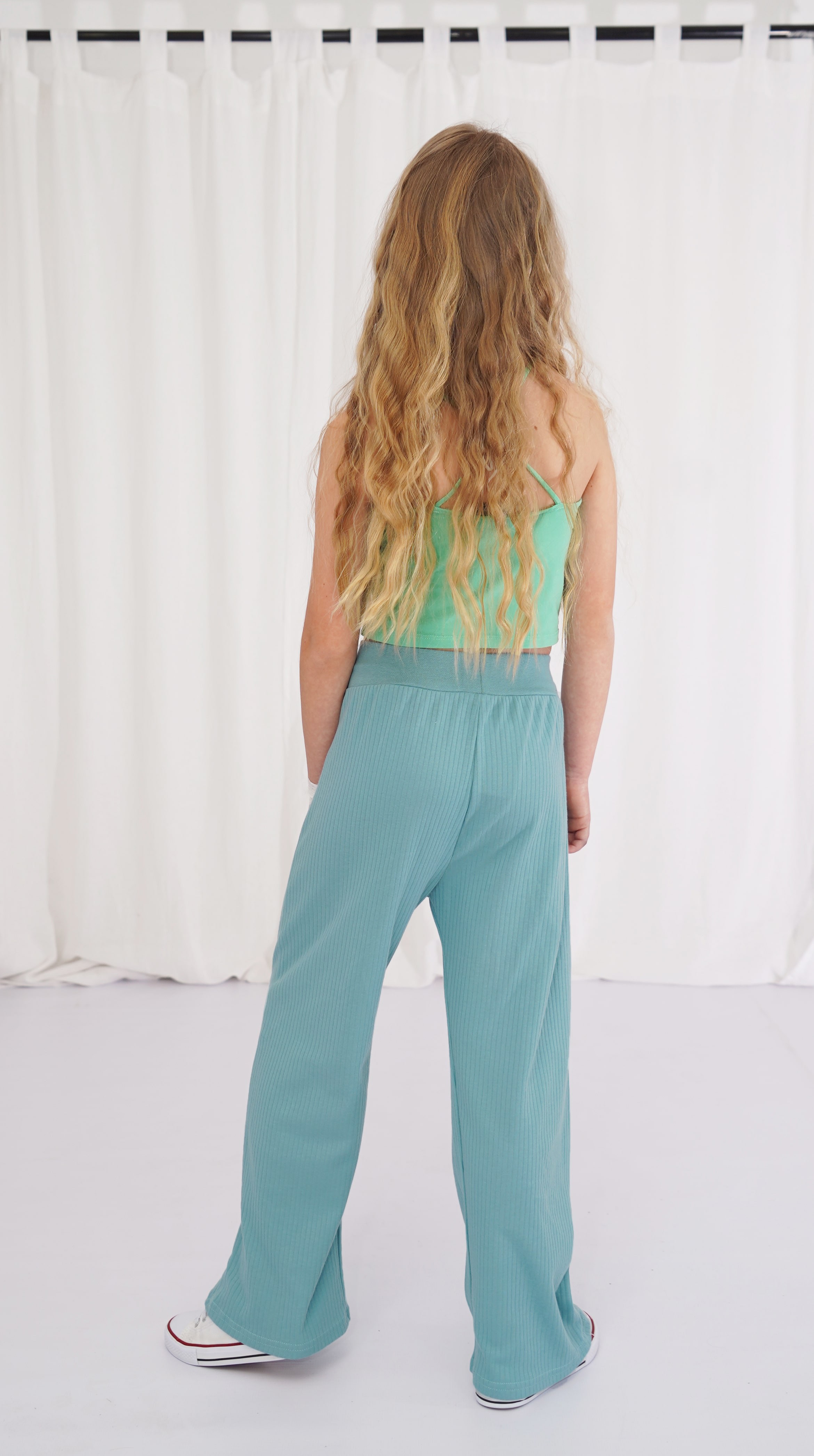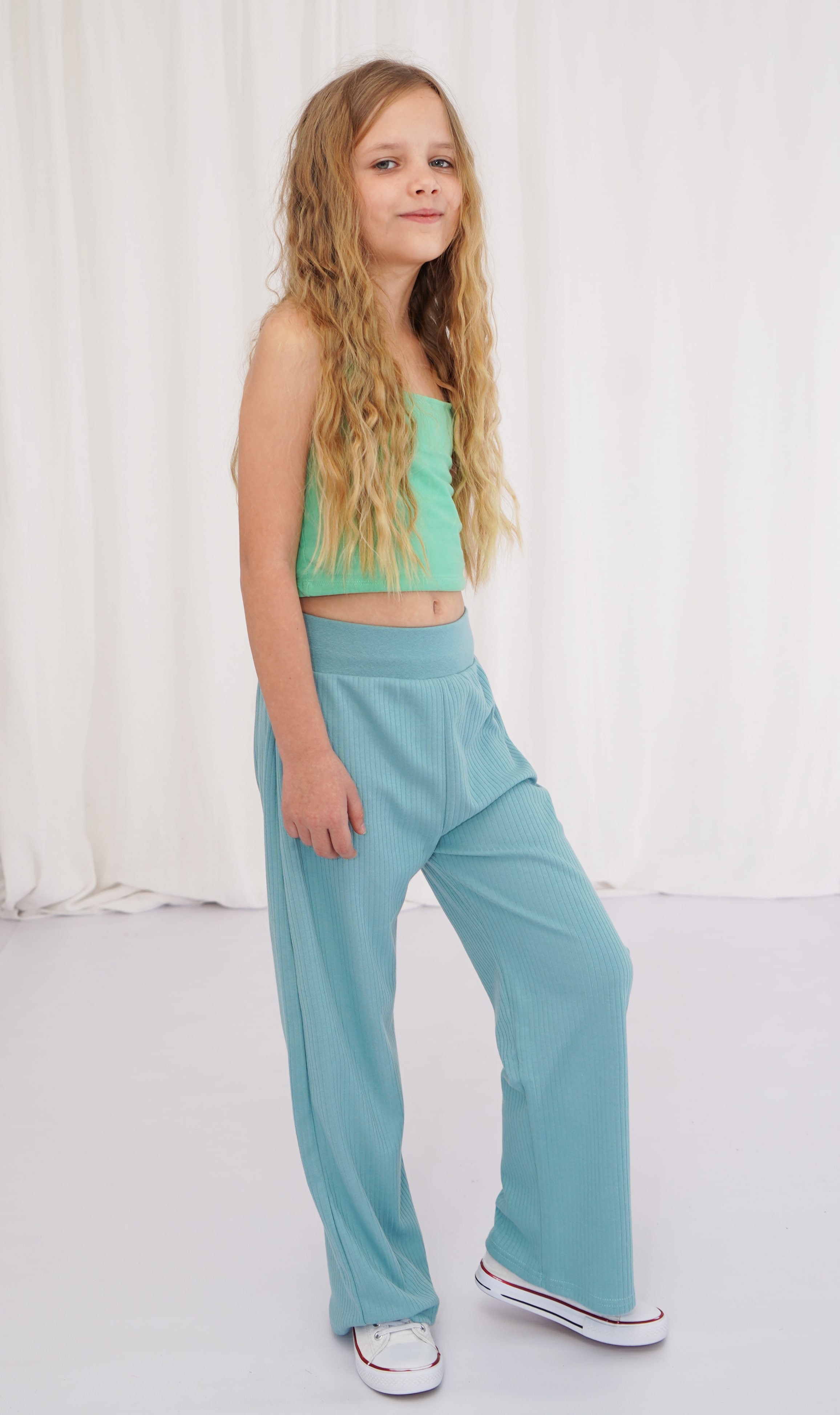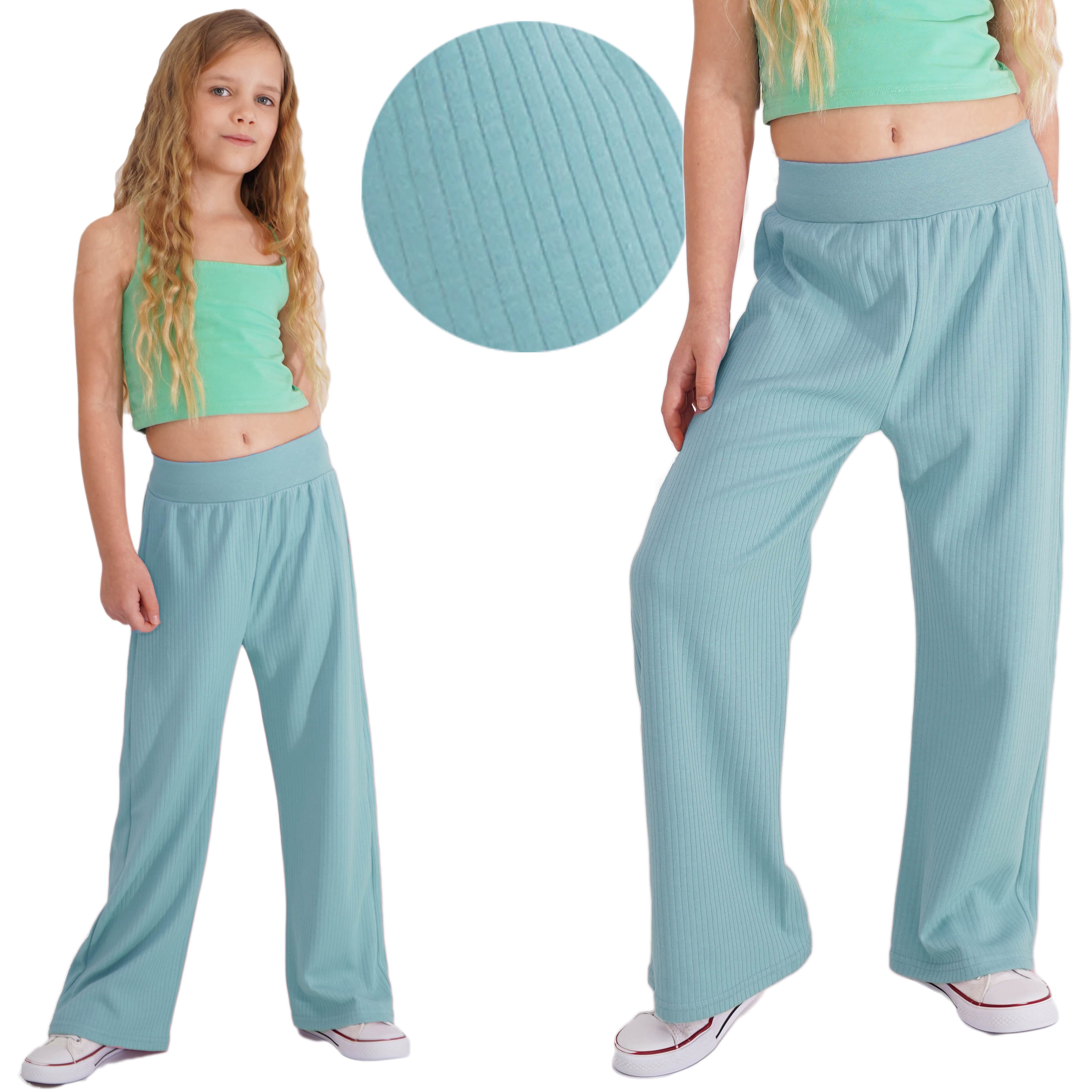 Bawełniane spodnie dziewczęce typu wide leg w kolorze iceberg