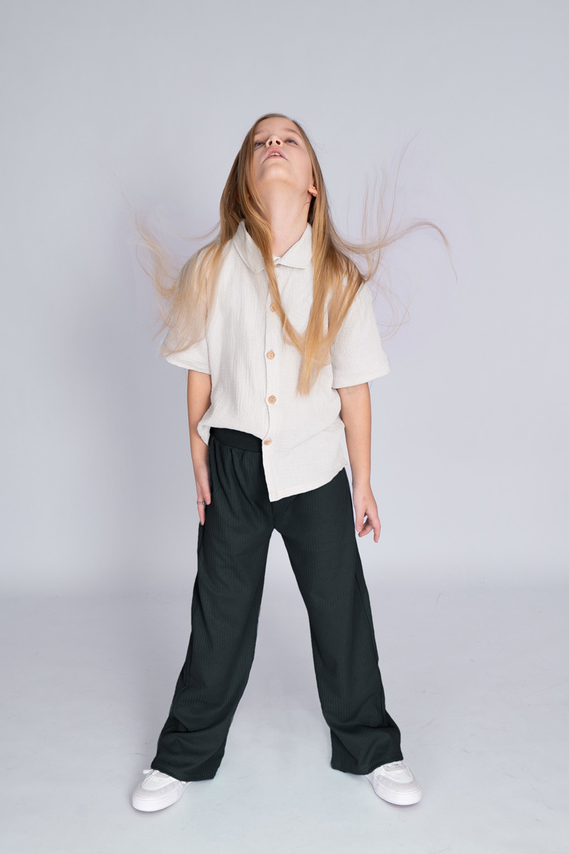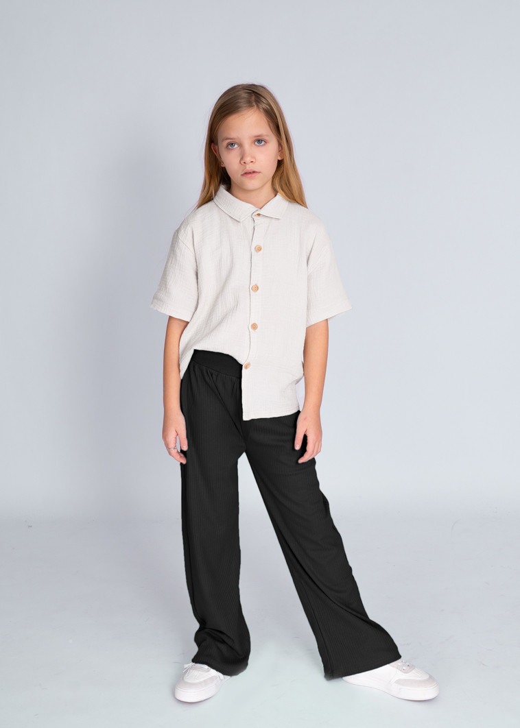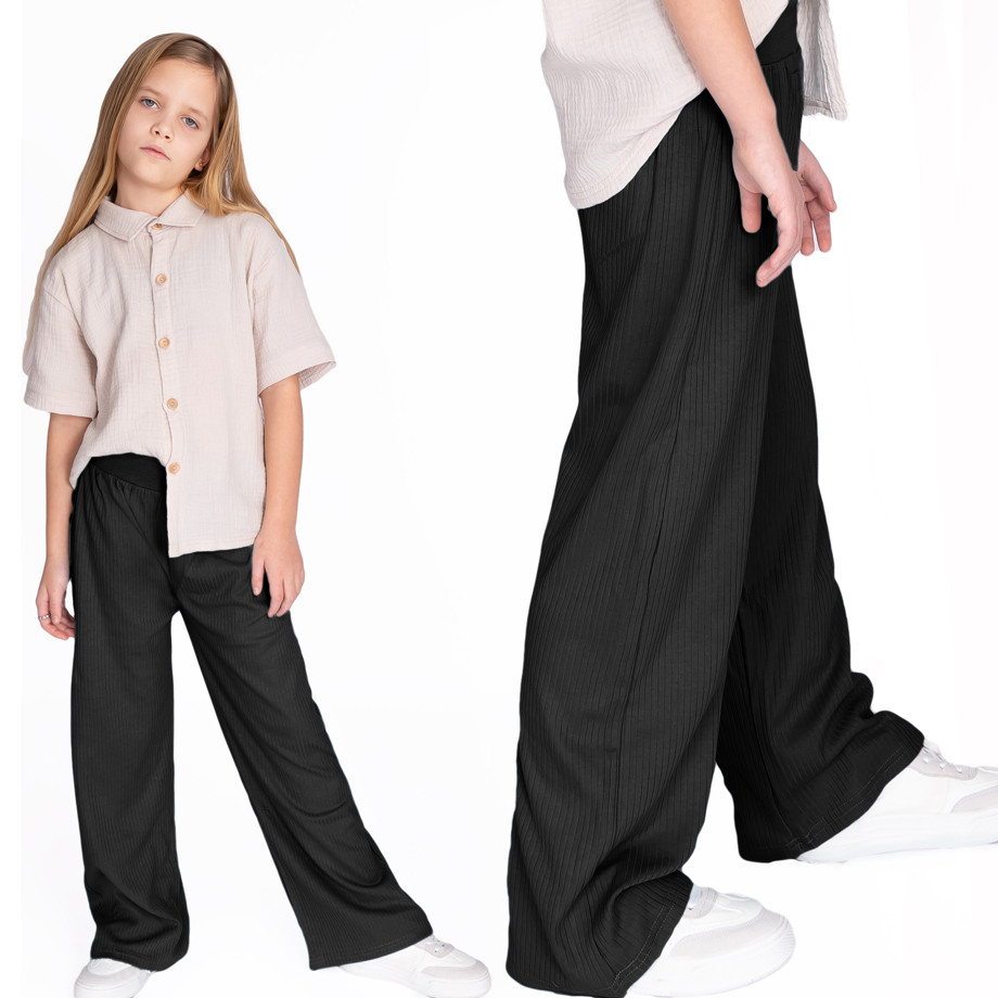 Bawełniane spodnie dziewczęce typu wide leg w kolorze czarnym