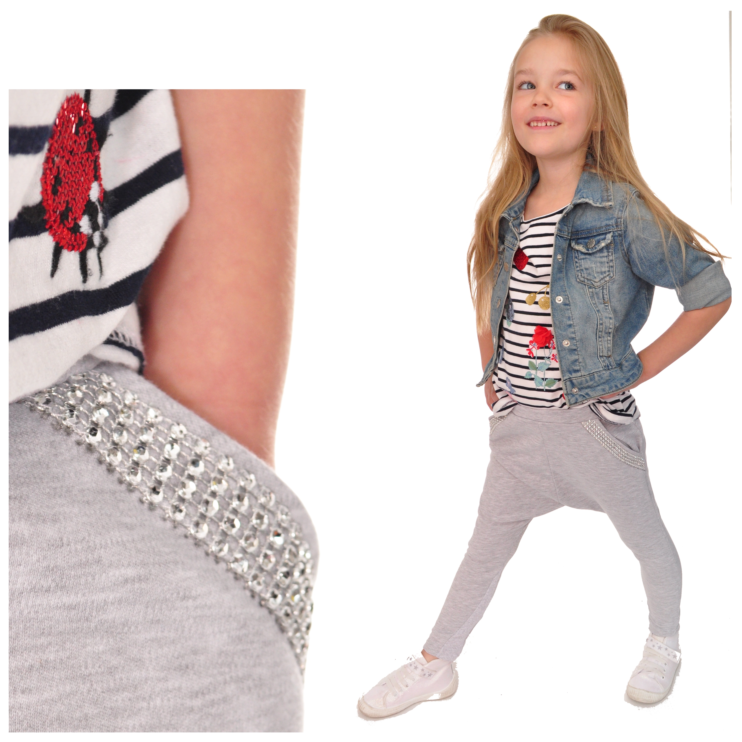 Te praktyczne spodnie dresowe o wygodnym kroju idealnie dopasowują się do kształtu ciała dziecka. Gładkie i jednolite spodnie dziewczęce świetnie komponują się z dowolnie dobraną górą a diamentowa aplikacja sprawi iż każda dziewczynka będzie się czuć wyjątkowo.
