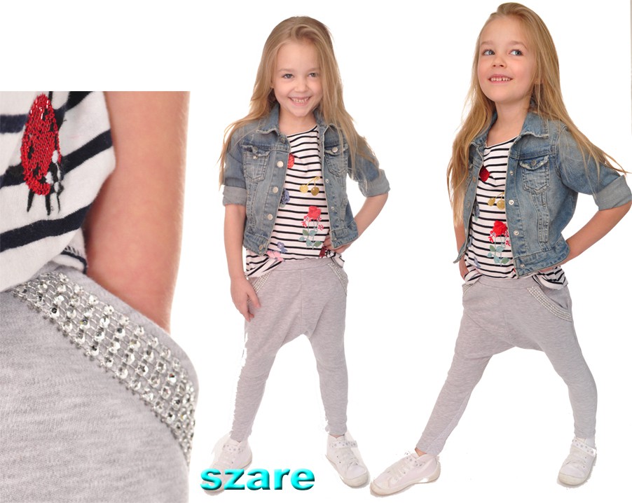 Spodnie typu LEGI z diamentowymi dodatkami, kolor szary.