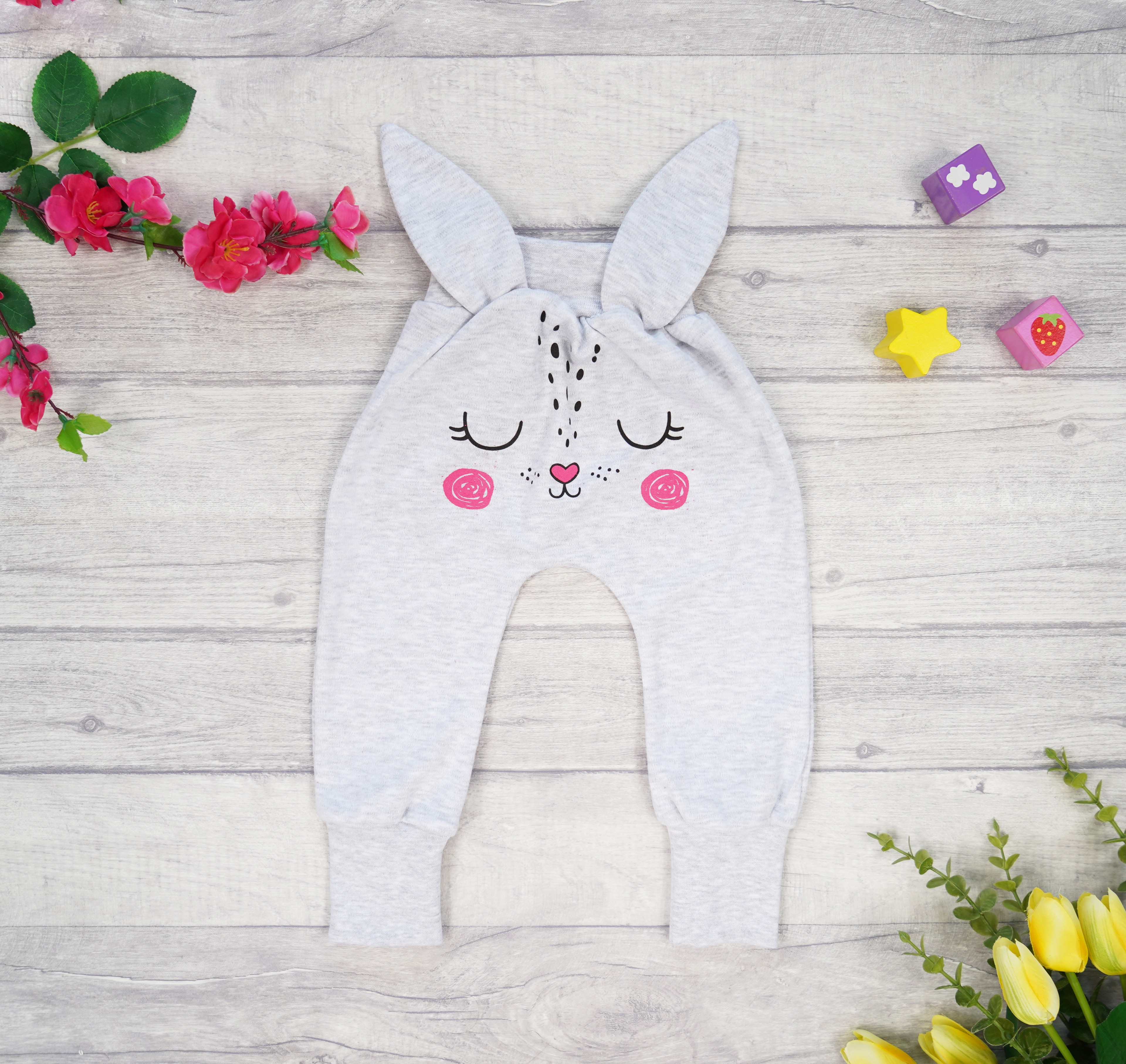 Szare SPODNIE bawełniane KRÓLIK półśpiochy wiosna jesień