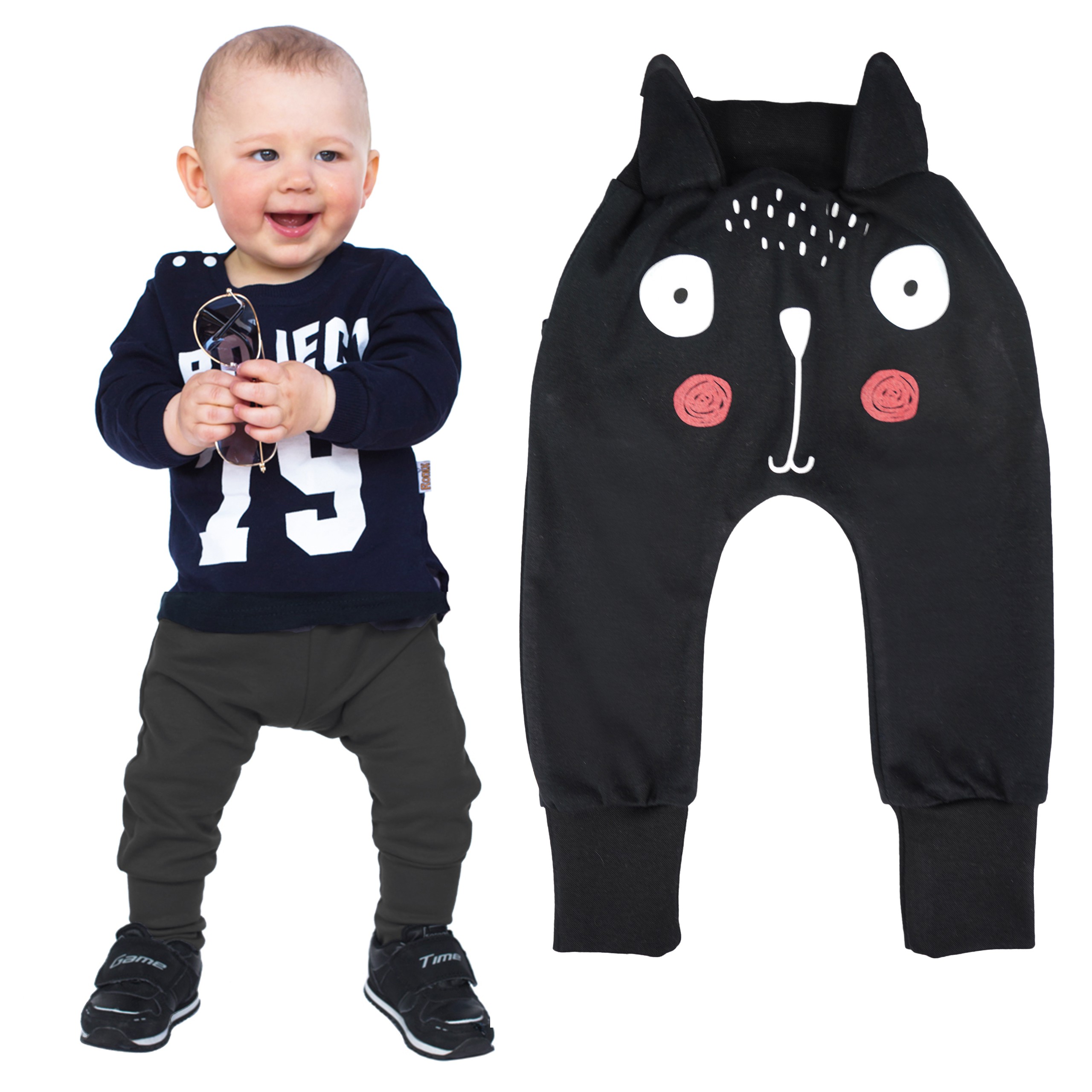 Te praktyczne spodnie dresowe o wygodnym kroju idealnie dopasowują się do kształtu ciała dziecka i nadążają za jego potrzebą ruchu. Stanowią praktyczny element codziennej dziecięcej garderoby a oryginalny design z nadrukiem liska z trójwymiarowymi uszkami na pupie dodadzą maluchowi niepowtarzalnego uroku. Sprawdzą się idealnie jako dół do body.